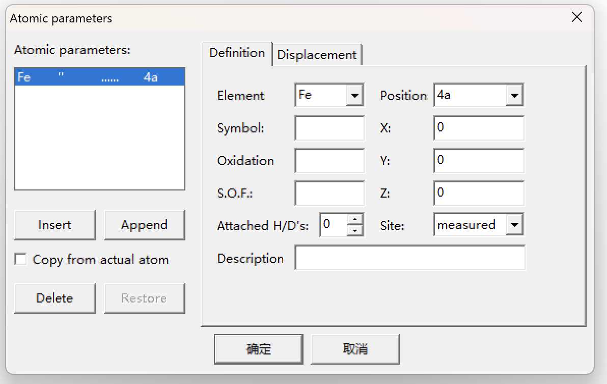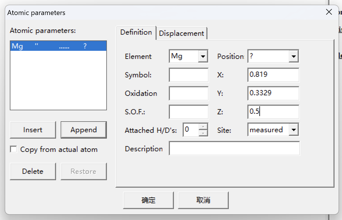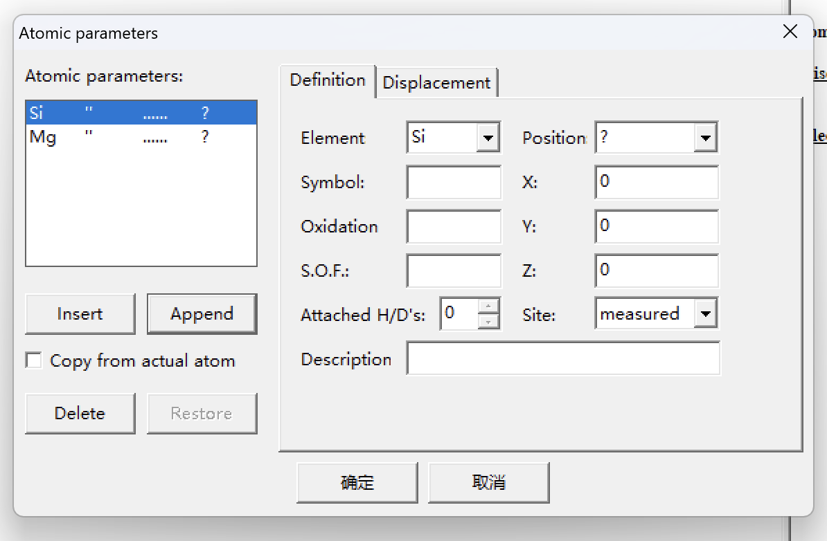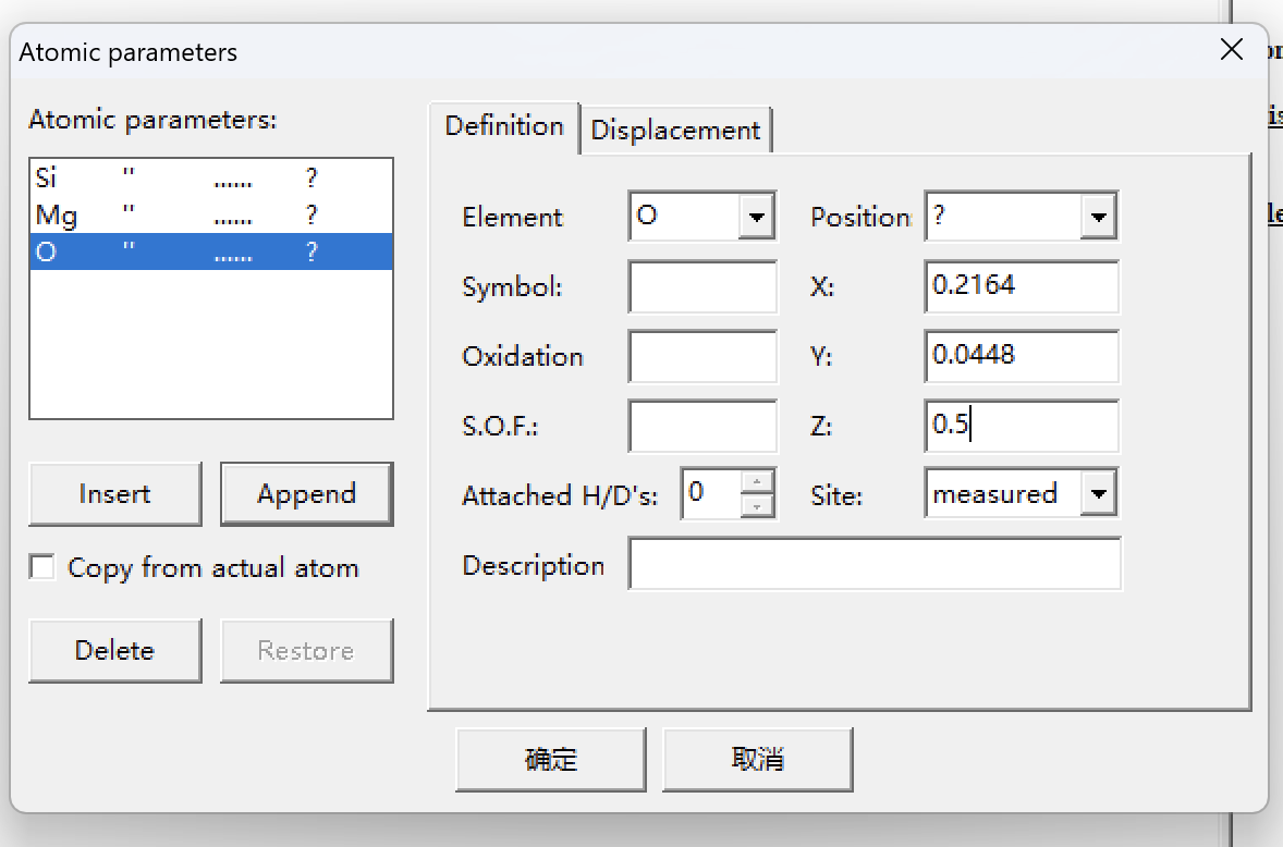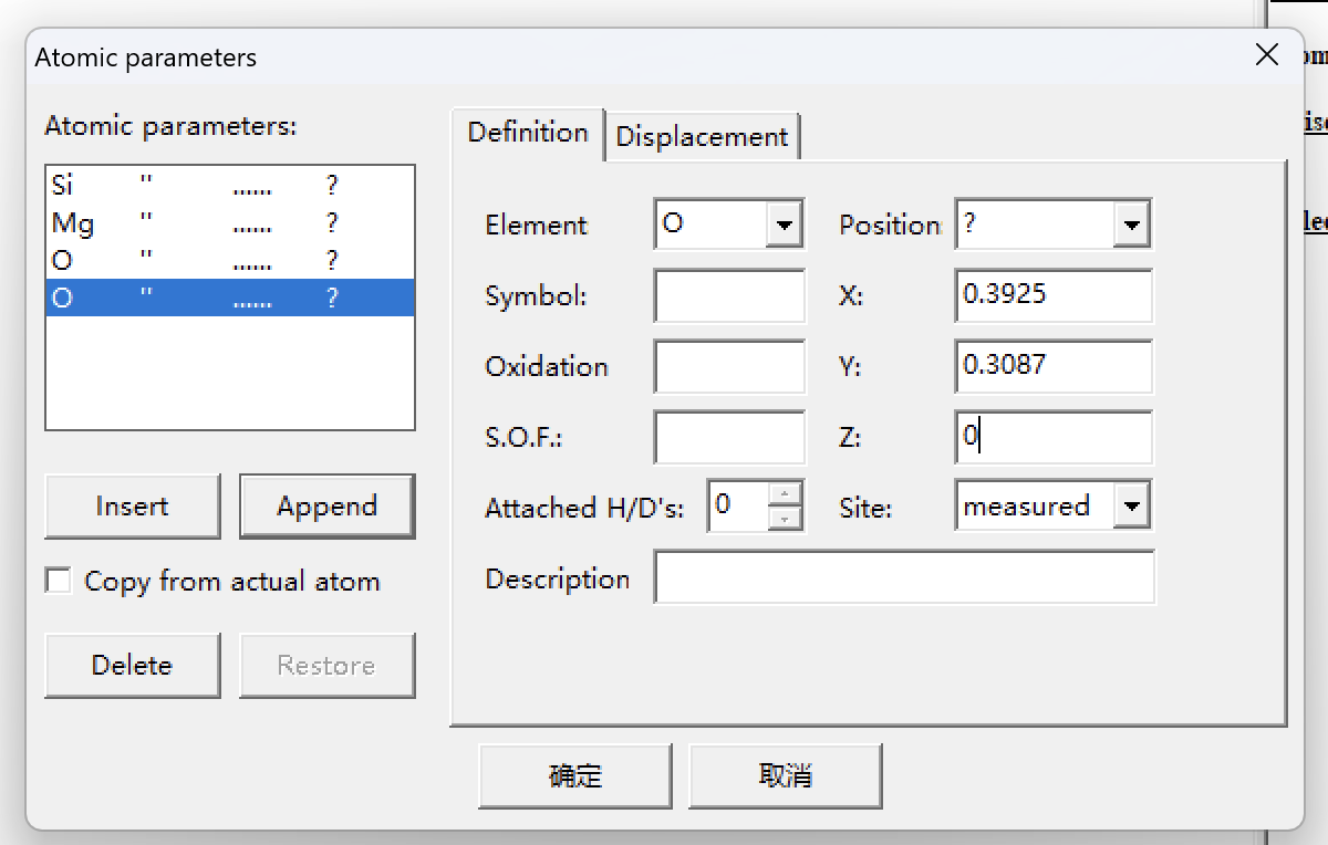 O2 .3925 .3087 0- Edit - Atomic parameters