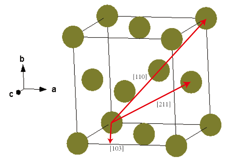 (3)在晶体结构立体图示中标示出[110]、[103]、[211]以及(110)、(103)、(211)晶面。