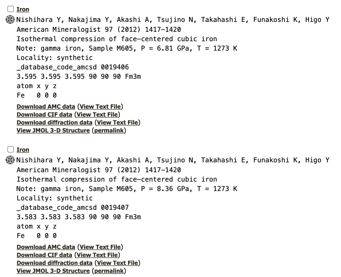 Note: gamma iron, Sample M605, P = 6.81 GPa, T = 1273 K